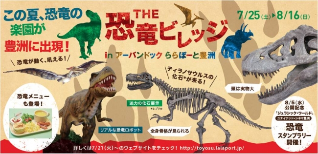 「三井ショッピングパーク アーバンドック ららぽーと豊洲」(運営:三井不動産商業マネジメント株式会社)では、 7月~8月の夏休み期間中、家族で楽しめる「THE 恐竜ビレッジ」や、花火と音楽がコラボした「SeaSide Live with 花火」を開催します。 今年の夏も、是非「アーバンドック ららぽーと豊洲」にお立ち寄りいただき、楽しい時間をお過ごしください。