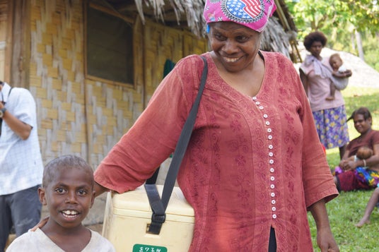JCVには毎月、「晩年、故人がコレクションしていたものです。ぜひ途上国の子ども達の支援にお役立てください」、「オフィスを掃除していた際に見つかりました。少しでもご協力できればと思います」などのメッセージと共に、全国の個人、企業・団体の方々からたくさんのはがきや切手が集まります。こうした皆さまの想いは、2024年1年間で、521,719人分のワクチンに換わりました。そして、昨年視察で訪問した支援国のひとつ、バヌアツの看護師さんからは「皆さまからご支援いただいたワクチンとソーラー保冷庫のおかげで、電気のないこの離島でも、ちいさな命と笑顔を守ることができています。継続したあたたかいご支援に感謝申し上げます。」との、お礼の言葉が届いています。