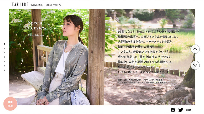 「月刊 旅色」2023年11月号 広瀬アリスさんがナビゲートする「神々が集うまち まばゆい出雲へ」