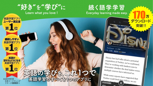 累計170万人が使う、ユーザ満足度No.1、成果No.1の英語学習アプリです。