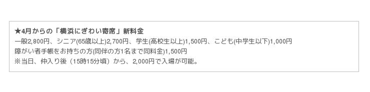 この4月から「有名会」という名称を「横浜にぎわい寄席」に変え、もっと大勢の人に来てほしいと料金を一新します。3,000円の均一料金を、値下げし、こどもやシニアなどの料金も新たに設定しました。