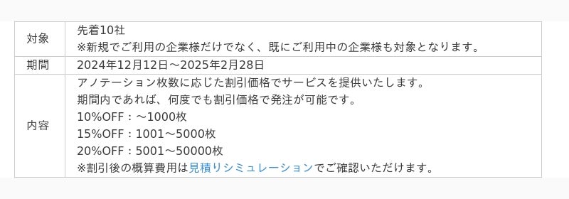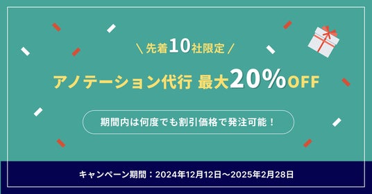 2025年2月末までの3ヶ月間、発注回数の制限なく、割引価格で教師データの作成を代行