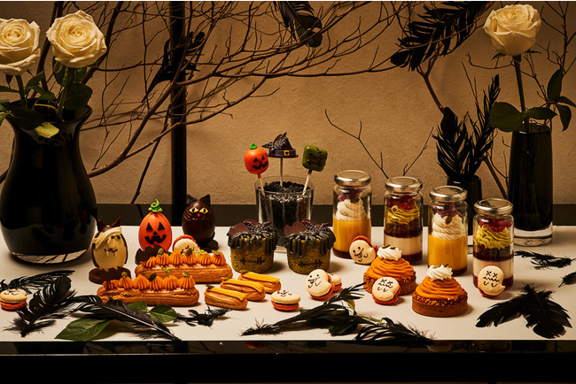 10月のハロウィンの時期には、毎年好評のパティシエの遊び心溢れる見た目にも可愛いハロウィンスイーツをお届けいたします。ジャック・オー・ランタンに見立てたパンプキンタルトは、こんがりと焼き上げたパンプキンのチーズタルトの上にカスタードクリームとパンプキンペーストで作った濃厚なクリームをたっぷりと絞り、周りにアーモンドクラッツランをちりばめた、食感も楽しめるタルトです。フランケンシュタインをモチーフにしたロールケーキは、カスタードクリームに黒ごまペースト、マスカルポーネチーズを混ぜ合わせたコク深い味わいのクリームをふわふわの抹茶味の生地で巻き上げ、黒ごまクリームで髪の毛を表現しました。昨年大変好評いただいたチョコレートエッグ。今年はギフトやご自身へのご褒美としても最適なミニサイズでご用意いたします。種類は黒猫、ジャック・オー・ランタン、ウルフを模った3種類で、中にはヘーゼルナッツチョコレートが入っています。エクレアは濃厚なかぼちゃクリームとシャンティを合わせたクリームを絞り入れ、かぼちゃのへたに見立てたチョコレートをトッピングしました。遊び心満載の一カ月限定のハロウィンスイーツをこの機会にぜひお楽しみください。