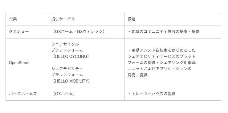 この度、タカショーとOpenStreetおよびパークホームズは連携し、電動モビリティを配備したEVチャージ拠点並びに、庭付きのIoT搭載トレーラーハウスを展開することにより、スマートヴィレッジの実現を目指します。
