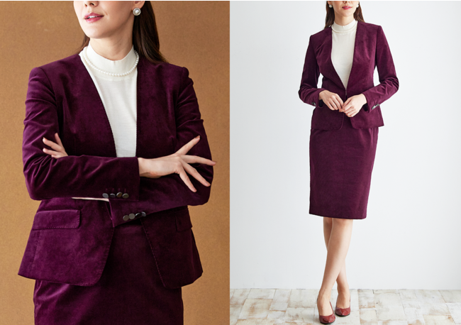 秋冬らしい温かみのある生地感でこれからのシーズンに最適な装いに仕上がります。