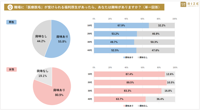 9.【職場の福利厚生、「医療脱毛」があったら…?】男性の6割・女性の8割以上が「興味がある」と回答