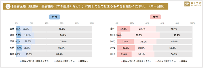 ◎20代男性5人に1人(20.3%)がこれから挑戦したい美容に「美容医療」と回答 世代別トップに