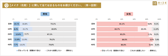 ◎「メイクに挑戦したい」男性は10代が一番多く、次いで40代となる