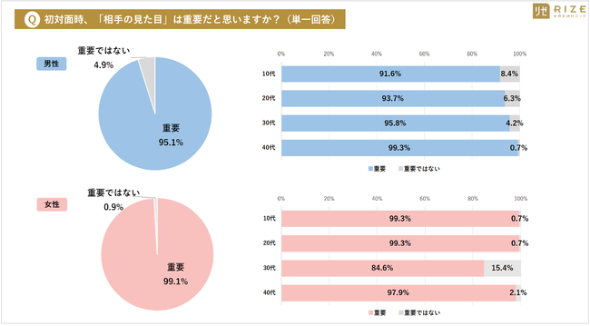 2.【第一印象は「見た目」がすべて?】初対面時「相手の見た目」は重要?9割以上「重要」(男性95.1% 女性99.1%)