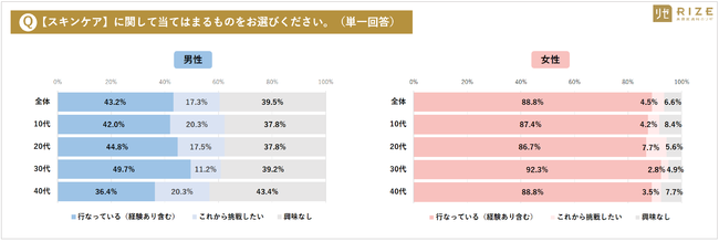 4.【スキンケア】男性の4割、女性の9割が「行なっている(経験あり含む)」と回答(男性43.2% 女性88.8%)