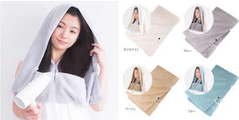 長い髪でもしっかり収まるロングサイズ。かぶるだけの頭巾タイプで着用が簡単。内側からドライヤーの風を当てることで頭巾内をサウナ状態にしドライヤーとタオルの相乗効果でヘアドライ時間を短縮。約32×145cm