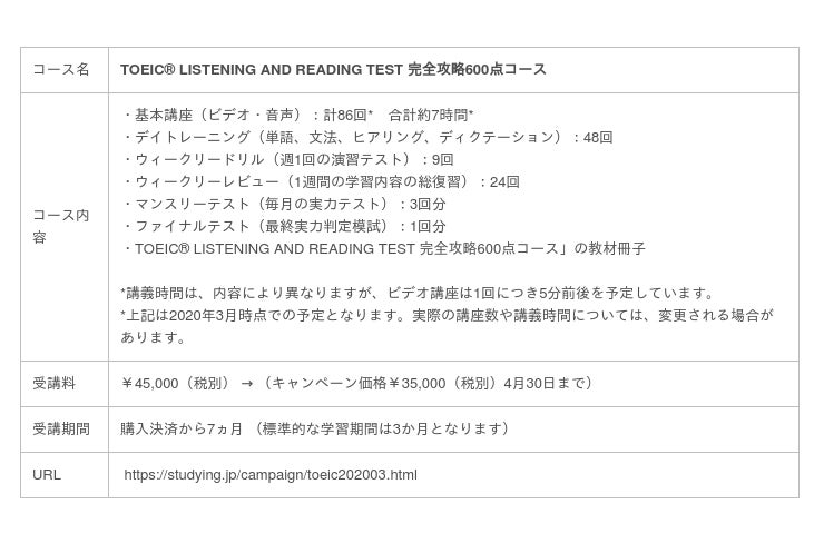 スタディング&アルク TOEIC(R) TEST 対策講座 オープン記念キャンペーン概要
