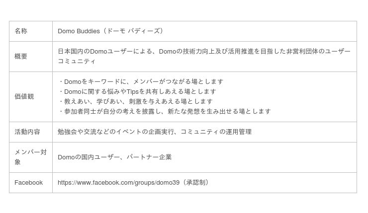 Domoウェブサイトにてリリースをご覧ください:https://www.domo.com/jp/news/press/domo-community-japan-domobuddies