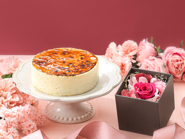 食べて美味しいバニラフロマージュと飾って楽しめるお洒落なプリザーブドフラワーでお母さんを笑顔に。