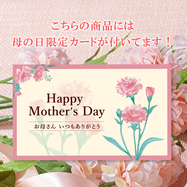 「お母さんいつもありがとう」のメッセージが入った母の日限定カードを無料でご用意しております。