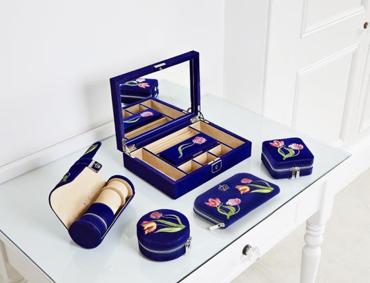 「WOLF X ROYAL ASSCHER COLLECTION」では、取り外し可能なトラベルケース付きジュエリーボックス、リング、ペンダント、イヤリング、バングルを収納できるミラー付きトラベル・ジップ・ジュエリーケース(ラウンドとスクエア)、2つ折りジュエリー・トラベル・ポーチ、ダブル・ウォッチ&ジュエリー・ロールの5種類をご用意しております。
