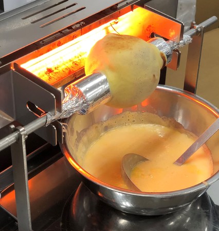 バウムクーヘンを自分で焼けるコーナーです!今回はりんごを丸ごと使用したバウムクーヘン作りを体験いただけます。