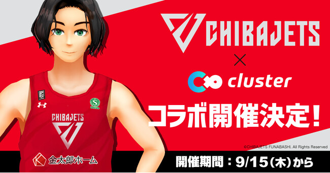 このたび株式会社千葉ジェッツふなばしでは、メタバースプラットフォーム「cluster」を運営するクラスター株式 会社(本社:東京都品川区、代表取締役 CEO:加藤直人)と 9 月 15 日(木)より、cluster 内でコラボを実施する ことが決定いたしました。バーチャル空間でも自身のアバターを使って千葉ジェッツを楽しめるという新たなコラボ をぜひお楽しみください。