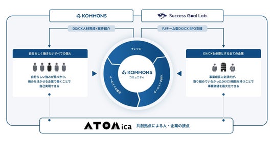 ソーシャルコワーキング(R)︎スタートアップの株式会社ATOMica(本社:宮崎県宮崎市、代表取締役:嶋田 瑞生、南原 一輝、以下「ATOMica」)は、カスタマーサクセス(以下:「CS」)特化のコンサル・BPOサービスとオンラインコミュニティを通じたCSキャリア支援サービスを提供する株式会社KOMMONS(所在地:東京都港区、代表取締役:白塚湧士、以下「KOMMONS」)とCS起点で企業の事業拡大を加速するコンサル・BPOサービスを提供するSuccess Goal Lab.株式会社(所在地:東京都中央区、代表取締役:大竹健斗、以下「SG Lab.」)の発行済株式を取得し、7月31日に子会社化いたしました。なお、3社は合併契約を締結しており、10月1日付でATOMicaを存続会社とする吸収合併を予定しています。