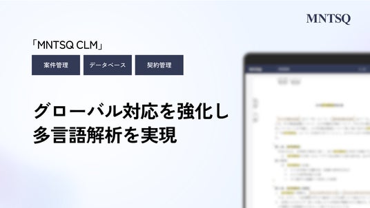 「すべての合意をフェアにする」をビジョンに掲げるMNTSQ株式会社(本社:東京都中央区、代表取締役:板谷 隆平、以下「当社」)は、提供する「MNTSQ CLM」において、従来の日本語・英語に加え、多言語の契約書をAI解析(要素分解)できる機能を追加したことをお知らせいたします。