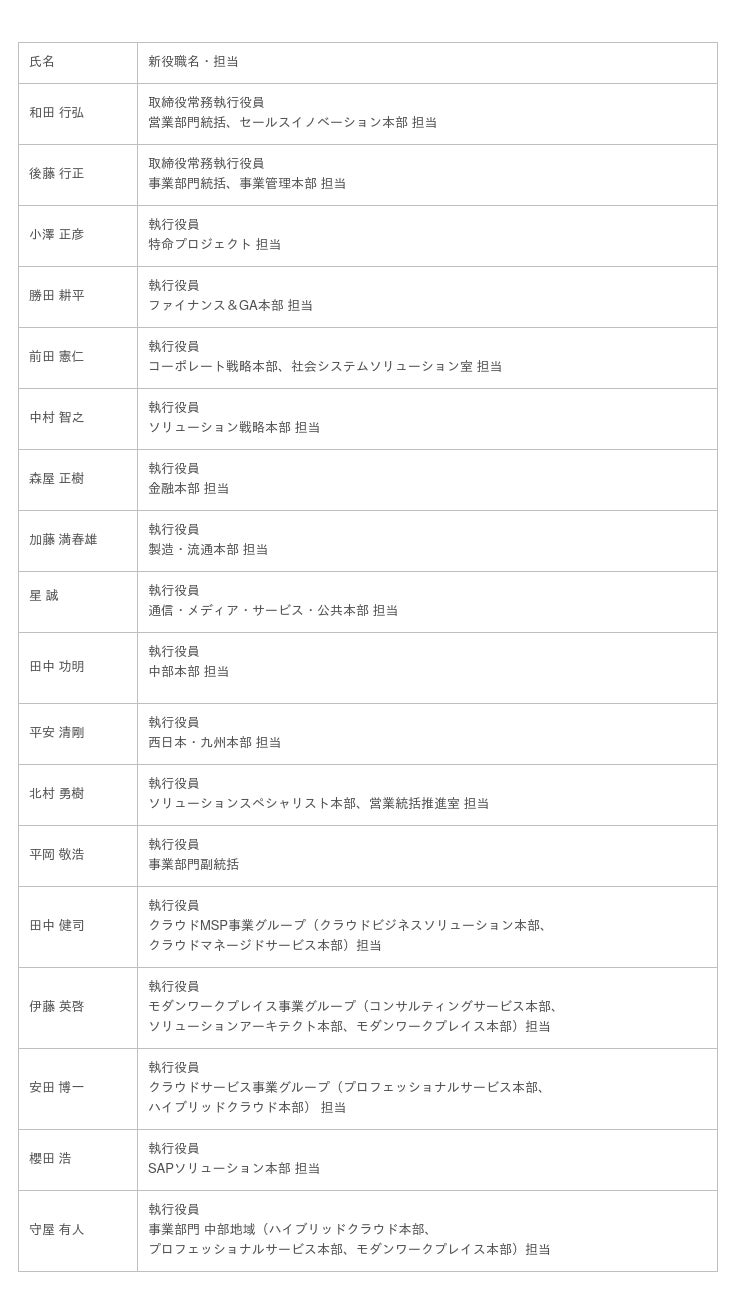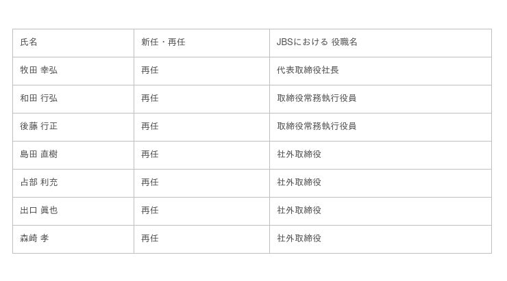 日本ビジネスシステムズ株式会社(本社︓東京都港区 代表取締役社長︓牧田幸弘 以下、JBS)は、本日開催の第32期定時株主総会及び、取締役会において、下記の通り役員人事を決定しましたことをお知らせします。