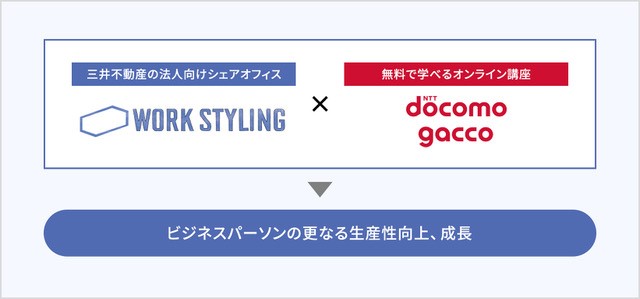 三井不動産株式会社(本社:東京都中央区、代表取締役社長 菰田正信)が展開している法人向けシェアオフィス「ワークスタイリング」と、株式会社ドコモgacco(東京都港区、代表取締役社長 佐々木基弘)が運営するMOOC※ (大規模公開オンライン講座)プラットフォーム「gacco(ガッコ)」は、2021年5月27日(木)より協業を開始し、大学や企業の提供講座をテレワーク環境下のビジネスパーソンに提供します。