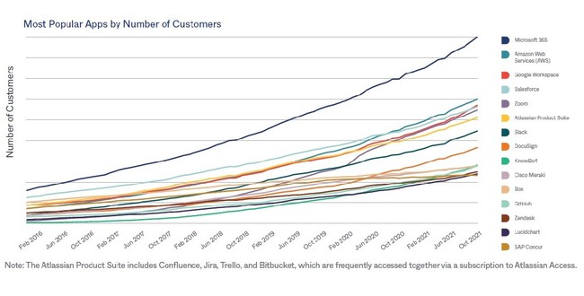 東京(2022年2月9日発) - セキュリティ意識向上トレーニングとフィッシングシミュレーション・分析を組み合わせた世界最大の統合型プラットフォームのプロバイダーであるKnowBe4(本社:米国フロリダ州タンパベイ、創立者兼CEO:Stu Sjouwerman (ストゥ・シャワーマン))は、Okta社による業務アプリ利用動向年次調査レポート「Businesses at Work 2022」(英文)https://www.okta.com/sites/default/files/2022-01/Businesses-at-Work-2022-Annual-Report.pdf において、KnowBe4が最も人気のある上位15アプリ(Top 15 most popular apps)中で最大の前年比成長率(56%)を達成したことを発表します。