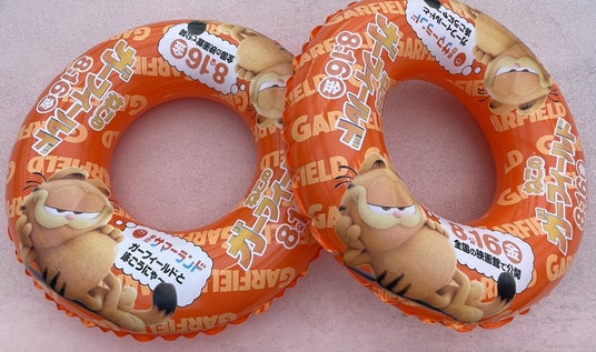 グレートジャーニー(流れるプール)用の浮き輪や装飾の他、フォトスポット、コラボメニューをご用意しております。この夏、初めて大冒険に出かけるガーフィールドと一緒にサマーランドでニャンダフル・アドベンチャーを楽しみませんか。