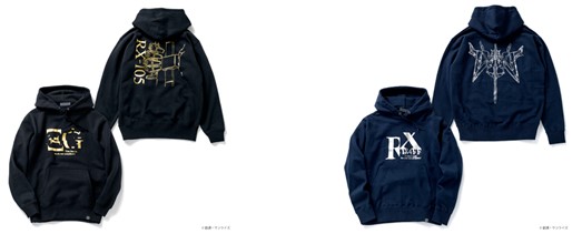ゴールドの箔プリントで、フロントにΞGの文字をグラフィック化し、劇中のアムロのセリフと組み合わせ、バックにΞガンダム登場シーンを表現した「Ξ(クスィー)ガンダム柄」、シルバーの箔プリントで、フロントにRX-104FFの文字をグラフィック化し、劇中のケネスのセリフと組み合わせて、バックにフィックスド・フライト・ユニットをラインアートにてデザインした「RX-104FF ペーネロペー柄」、オーセンティックなシルエットのパーカー2種。