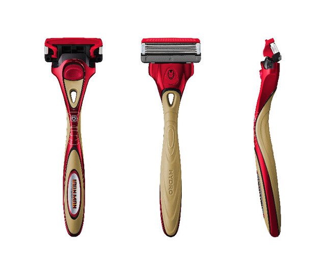 ・カミソリ本体のカラーリングは赤と金をベースにして、一目でアイアンマンと分かるデザインに。