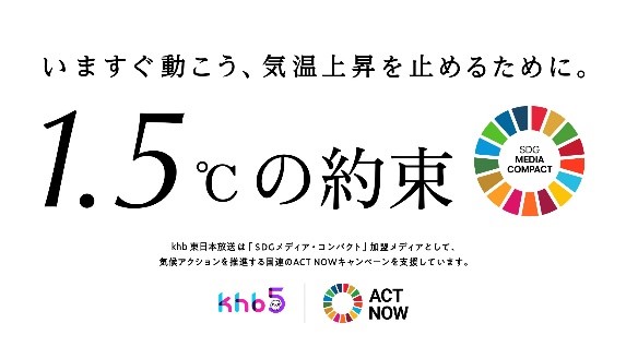 khb東日本放送は、SDGメディア・コンパクトに加盟しており、2022年6月に立ち上がったキャンペーン「1.5℃の約束 – いますぐ動こう、気温上昇を止めるために。」に参加しています。9月19日からのキャンペーン強化期間では、今回の「あすとつながるkhb」を通じて、情報発信を強化してまいります。