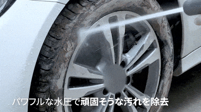 強い水流を噴射しますので、タイヤの泥のような頑固な汚れを落とす場合にお勧めです。