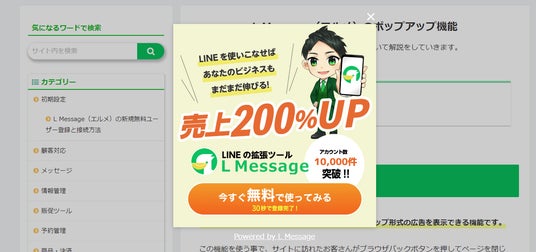 ポップアップ機能を使うことで、ご自身のWEBサイト上に自動でポップアップ形式の広告を配信できます。
