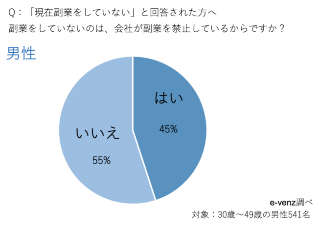 「現在副業をしていない」と回答した方に、会社が副業を禁止しているのか調査してみました。