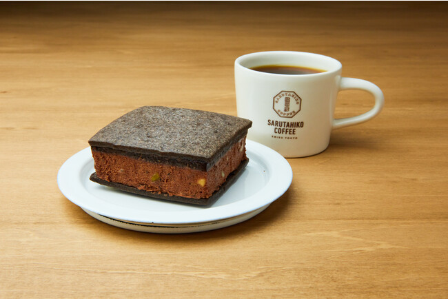 フローズンデザートの美味しさを、より多くの人に知って貰いたい、味わっていただくきっかけを作りたい。そんな思いから、コーヒーをはじめ様々な製品・ブランドとの提携で市場を盛り上げる猿田彦珈琲とのコラボレーションを実現させました。昨年11月に発売した珈琲ティラミス・珈琲セミフレッドに続き、第二弾の今回はワンハンドで楽しめるクッキーサンド。珈琲と相性の良いチョコレート味とキャラメル味の2フレーバーを発売いたします。