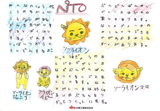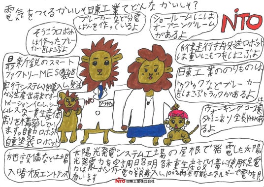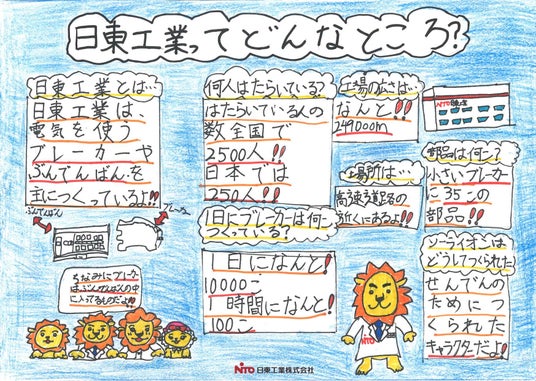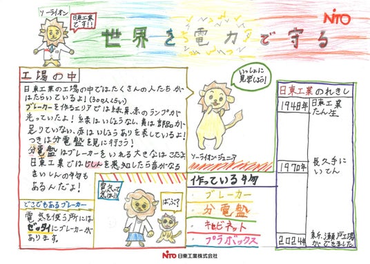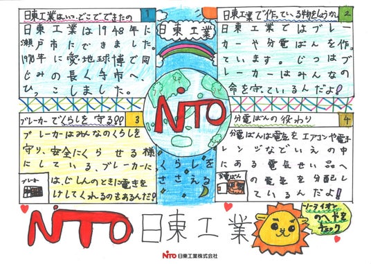 小学3年生が描いてくれた日東工業の紹介ポスター(一部)は以下にも掲載します。