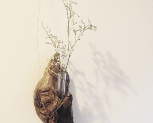 流木と真鍮で作成したアップサイクルの一輪挿し。