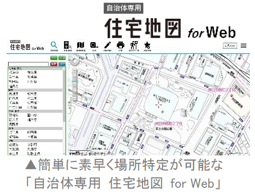 佐世保市庁内における業務の効率化を実現するため、資料作成、問合せ対応、訪問準備などの自治体業務をサポートする「自治体専用 住宅地図 for Web」の活用によるデジタル化の推進を支援します。
