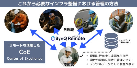 私たちは「SynQ Remote」を通じて、技術・ナレッジ・データを集約し、現場に行かずとも、正確な指示・記録・判断ができる仕組みを通じて、省人化と品質確保の両立を実現します。