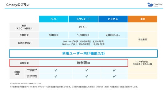 - Cmosy ファイル便の送信容量が「無制限」に※