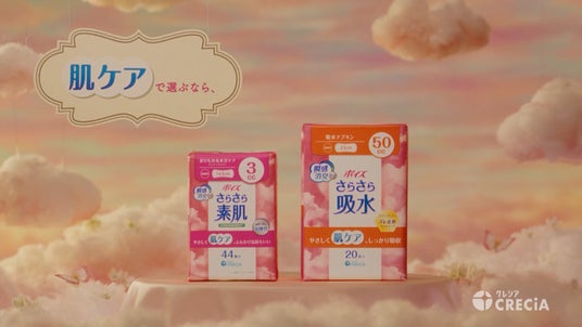 成人女性のおよそ2人に1人の方が尿モレの経験があると言われている中、誰にでも起こりうる尿モレに対するネガティブなイメージを少しでも払拭したい想いをカタチにしたのが、やさしく肌ケア、日々によりそう「ポイズ さらさらシリーズ」の新コマーシャル「ポイズ さらさらシリーズ 肌ケア」篇です。ポイズのブランドカラーであるピンク色の空と雲海の中、吸水ナプキンの様々な不安の声に寄り添い、そのお悩みを払拭するのに、吸水・消臭だけではない肌へのやさしさを考えたポイズをおすすめしています。