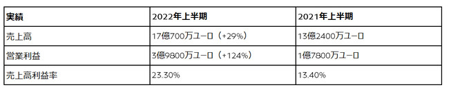 下半期の見通しは依然として厳しいものの、上半期の営業利益は前年同期比124%増となる3億9800万ユーロとなり、過去最高となった前年通期の営業利益3億8900万ユーロを上半期だけで上回りました。