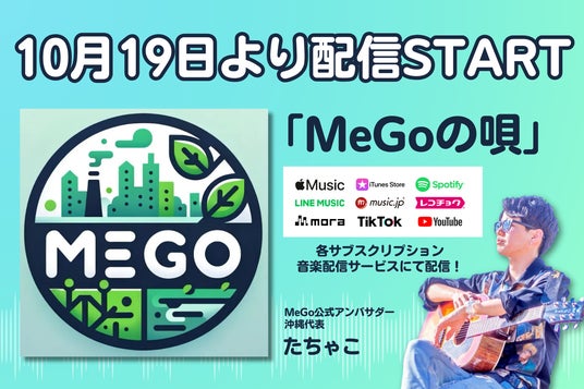 「MeGoの唄」は、各サブスクリプション音楽配信サービスにて2024年10月19日より配信リリース。「MeGoの唄」を聴きながら、MeGoを使って地域の美化活動に参加してみませんか?