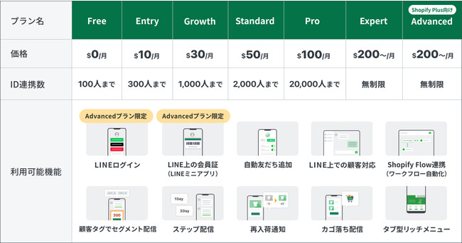 現時点ではShopifyアプリ「CRM PLUS on LINE」Proプランからご利用可能です。随時ご利用可能プランは拡大予定です。
