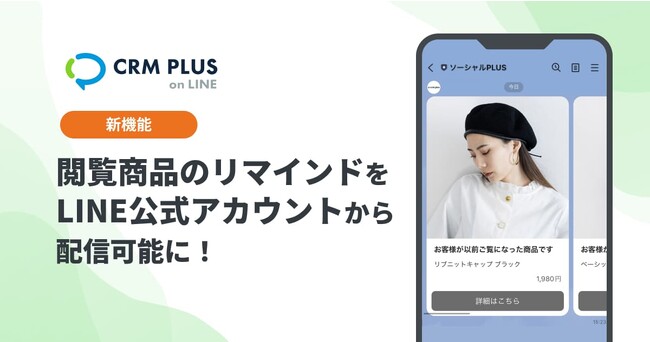 2023年3月22日、株式会社ソーシャルPLUS(所在地:東京都文京区、代表取締役:岡田 風早)が提供するアプリ「CRM PLUS on LINE」に、閲覧商品のリマインドメッセージをLINE公式アカウントから配信する機能を追加しました。