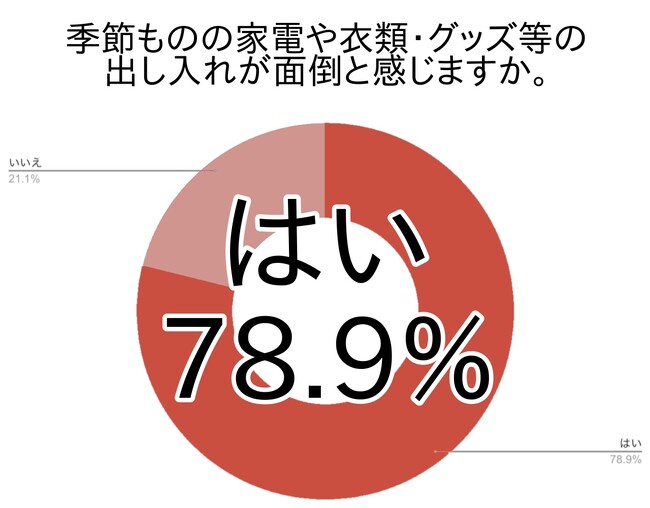 そこでアンケートでは、季節ものの家電や衣類・グッズ等の出し入れが面倒と感じるかを尋ねました。