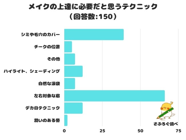 メイクの上達に必要だと思うテクニックをアンケートにて調査したところ、1位は「左右対称な眉」でした。