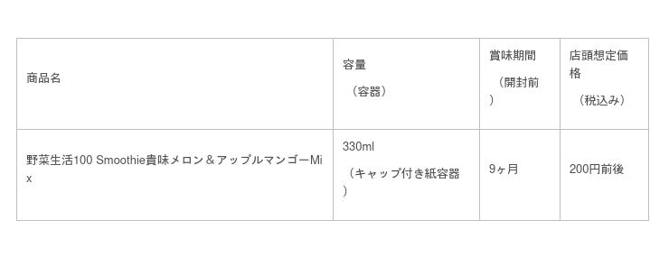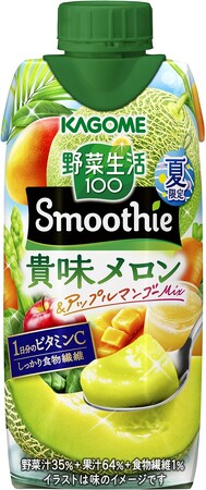 夏限定で発売する「野菜生活100 Smoothie 貴味メロン&アップルマンゴーMix」は、貴味メロンの上品でさわやかな甘さとほのかにアップルマンゴーを感じる濃厚スムージーです。1食分の野菜※を使用し、食物繊維と1日分のビタミンCが摂れます。
