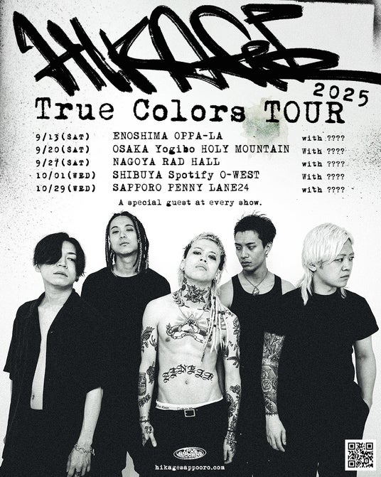 HIKAGE初のフルアルバム「True Colors」のリリースを記念して、全公演に豪華ゲストを招聘したHIKAGE 史上最大規模のツアーを開催。6月15日(日)14:00より限定Tシャツ付き特別先行チケット受付開始。