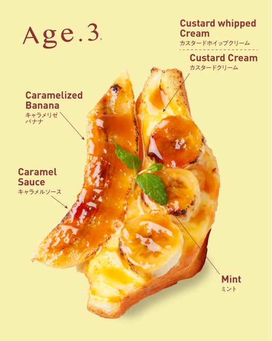 株式会社ANCHORが展開する「Age.3(アゲサン)」は、全店舗で不動の1位を誇る“クレームブリュレ”をベースにした新商品『バナナブリュレ(BANANA BRÛLEE)』を5月1日(金)より発売